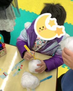形が完成したらシールを貼ってオリジナルの雪だるまにしてもらいました。
