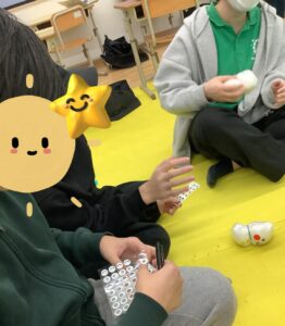 輪ゴムはカラーバンドを使い、好きな色のゴムを2個選んで留めてもらいました。