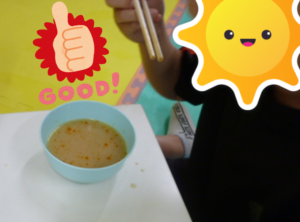 協調運動の苦手な子にとっては中々大変だったようで、麺を取るのに集中するあまり、
