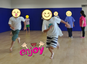 新聞紙を使った遊びや「だるまさんが転んだ」など、いつもの遊びも