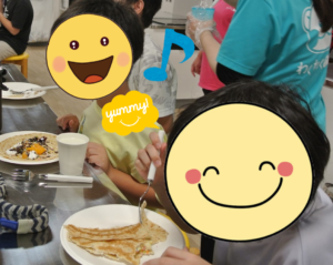 おやつタイムでは調理室でクレープ作りに挑戦。