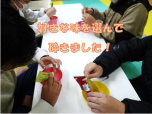 自分の好みに合わせて、しょうゆやはちみつ、きなこなどをかけて食べました!
