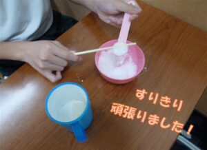 そんな皆にぴったりの実験?!のようなミニクッキングを行いました!