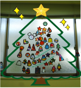 完成した作品を窓に貼ると、光を通して色とりどりに輝き、