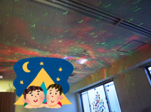 寝袋に入ってまったりしたり、壁や天井に広がる星に目を輝かせ、