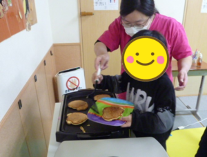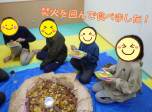 出来上がったおやつを受け取るとニコニコ笑顔で、皆で一緒に美味しく食べました。