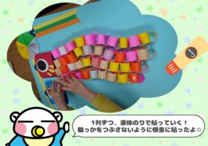 この日の活動では、輪飾りでできるこいのぼり制作をしました☆
