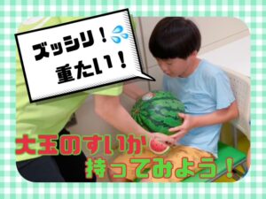 普段なかなか経験できないスイカを持つ体験にみんな緊張していました!