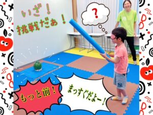 おばけのようなスイカをみんなでスイカ割体験をしました!