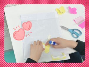 切ったチューリップをのりで貼りつけて立体的な花びらに。