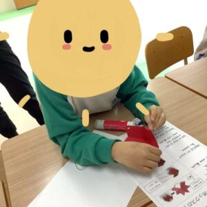 このプレゼントボックスは糸を使って作っています!糸を通したり、かた結びをするなど細かい作業にみなさんチャレンジしてくれていました!
